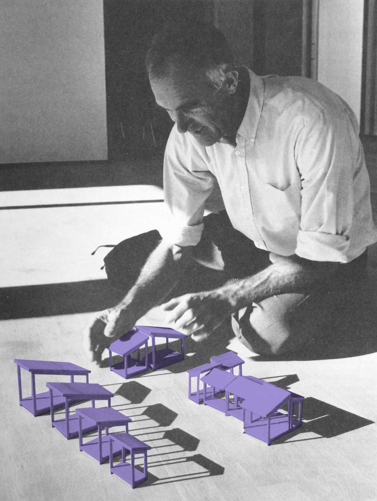 Utzon applied these principles in the building system Espansiva, a patent for prefab wooden houses based on four cells, with the basic structure of a shed and a size according to the different functions of the rooms of a house. The same principles of unlimited growth and prefabrication were applied on two series of furniture with very different images: the Utsep system and the New Angle system, both created in 1968.