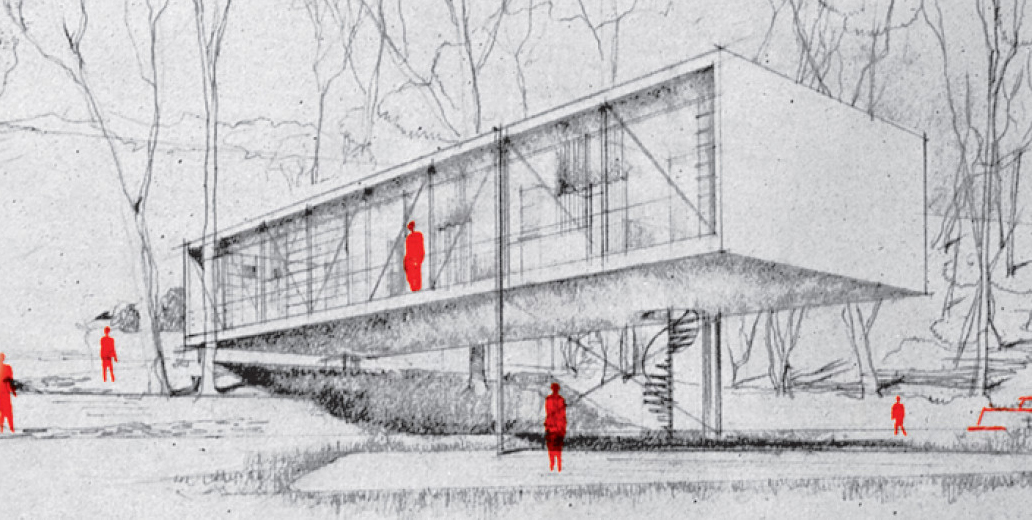 Para una pareja casada, ambos ocupados profesionalmente con la experimentación mecánica y la representación gráfica. El trabajo y el ocio se implican en las actividades generales: Día y noche, trabajo y juego, concentración, relajación con amigos y enemigos, todo mezclado personal y profesionalmente con sus intereses mutuos.Arts and Architecture, diciembre 1945