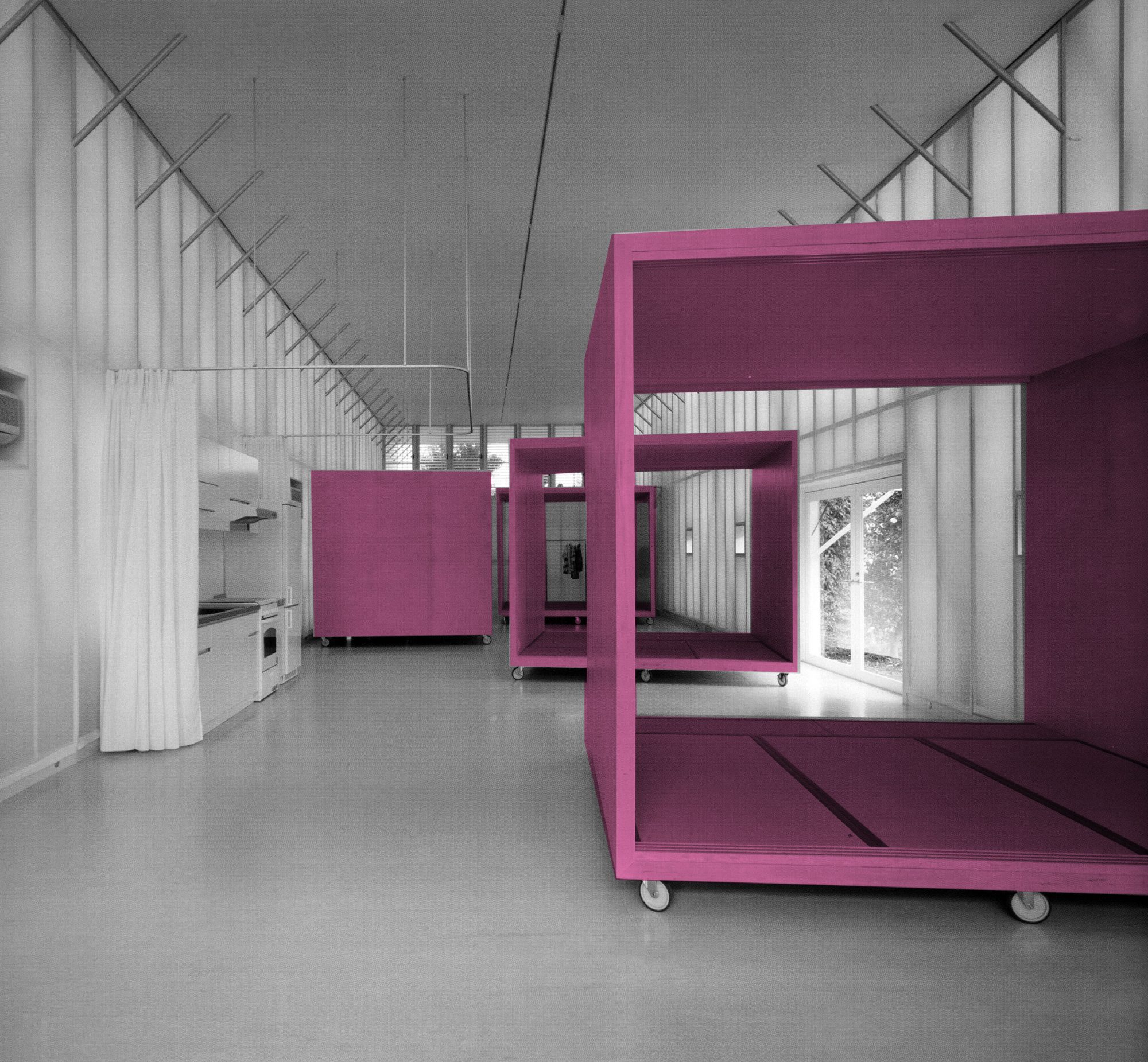 Otra de sus obras residenciales más singulares es la Casa Desnuda (1999-2000), donde los espacios, que por cuestiones de privacidad deben compartimentarse, se resuelven como piezas móviles que pueden situarse aleatoriamente dentro de una planta libre, es decir, como mobiliario. Los tres dormitorios son muebles que pueden desplazarse por la casa, conectándose a las redes que recorren el perímetro y permitiendo la máxima flexibilidad en la configuración del espacio interno.