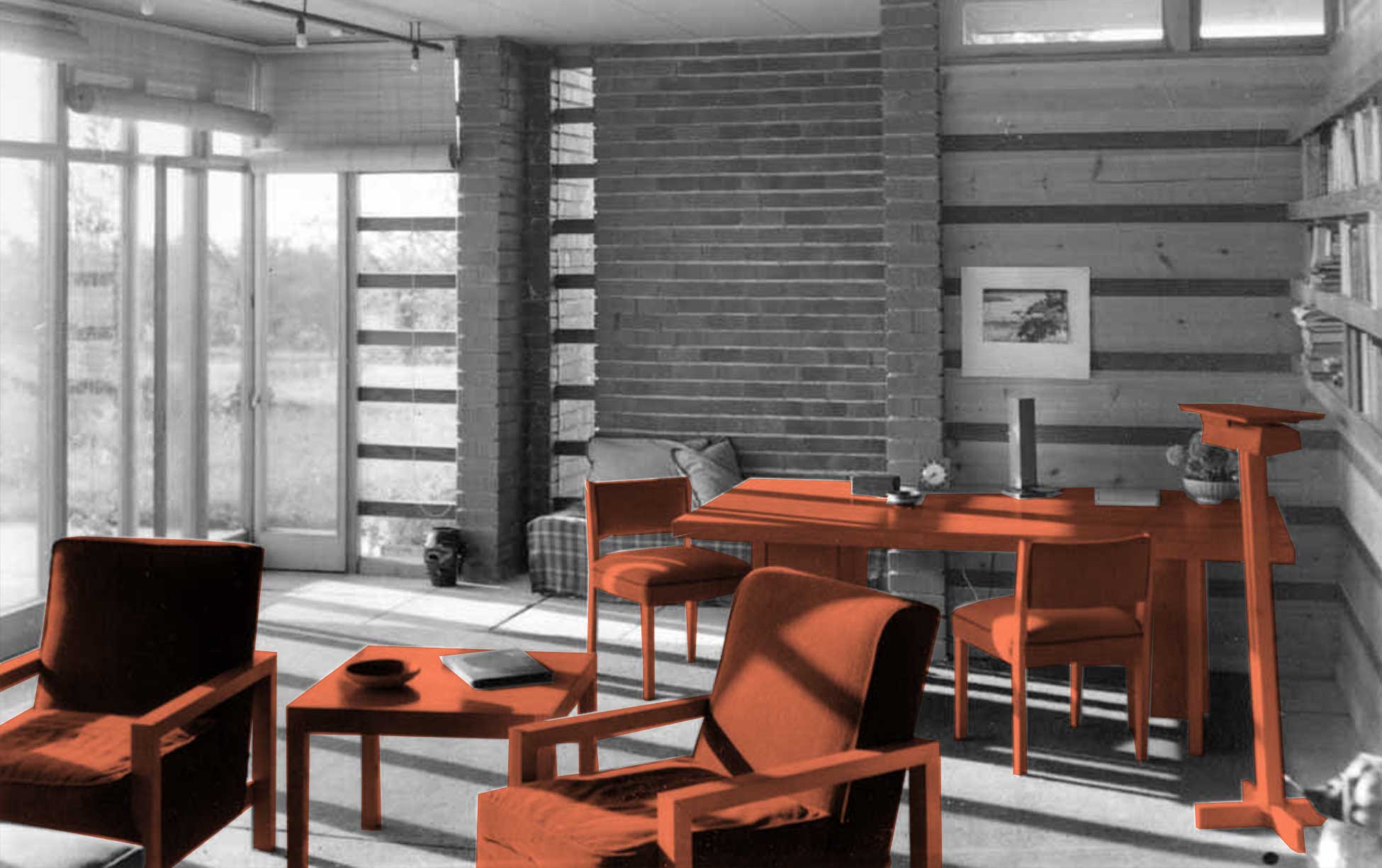 Durante los años 30, el arquitecto norteamericano Frank Lloyd Wright lanzó el concepto de casas usonianas con el objetivo de conseguir una vivienda asequible para el americano medio, coincidiendo con la política del New Deal del presidente Roosevelt. La economía de estas casas se basaba en su simplicidad, el uso de mallas geométricas y la estandarización de un sistema constructivo común para todas ellas. Se llegaron a construir unas sesenta casas usonianas, empezando por la casa Jacobs I en 1936. A pesar de su limitado presupuesto, estas fueron pensadas siguiendo los principios de la arquitectura orgánica de Wright. Es decir, todos sus aspectos, incluyendo también el mobiliario, estaban decididos y diseñados por el arquitecto.