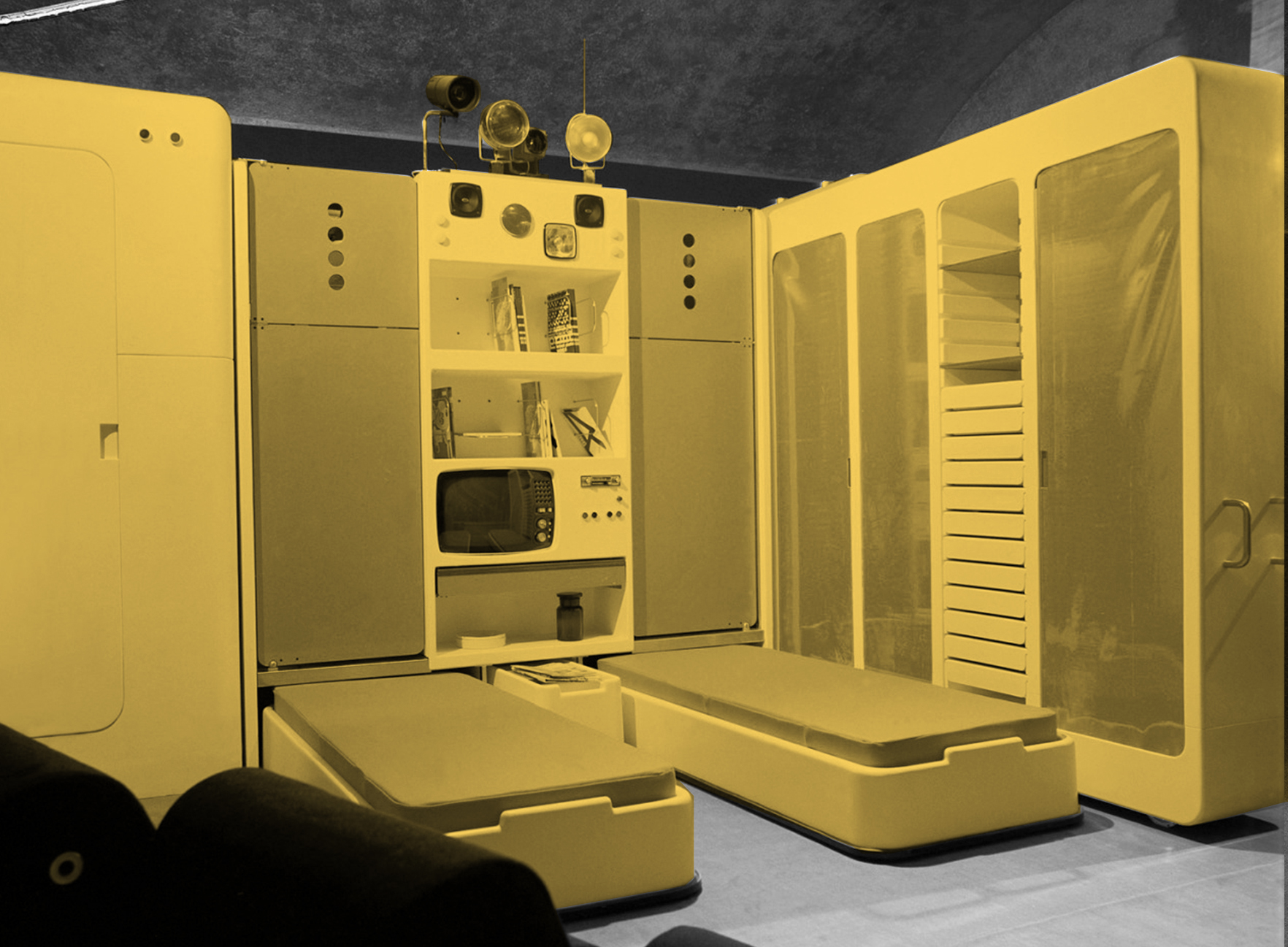 Ettore Sottsass Jr. proyectó un ambiente transformable formado por unidades de almacenaje móviles y conectables que contenían todo el equipamiento doméstico. Marco Zanuso y Richard Sapper diseñaron una unidad de vivienda de emergencia transportable y expansible a partir de un contenedor de transporte de mercancías. Joe Colombo presentó en esta exposición su último trabajo, la unidad de vivienda autónoma Total Furnishing Unit, formada por cuatro células de mobiliario que podían separarse o combinarse entre ellas para permitir la máxima variabilidad. El elemento común de estas propuestas a medio camino entre la arquitectura y el mobiliario era su independencia absoluta del espacio circundante para formar un ambiente habitable.